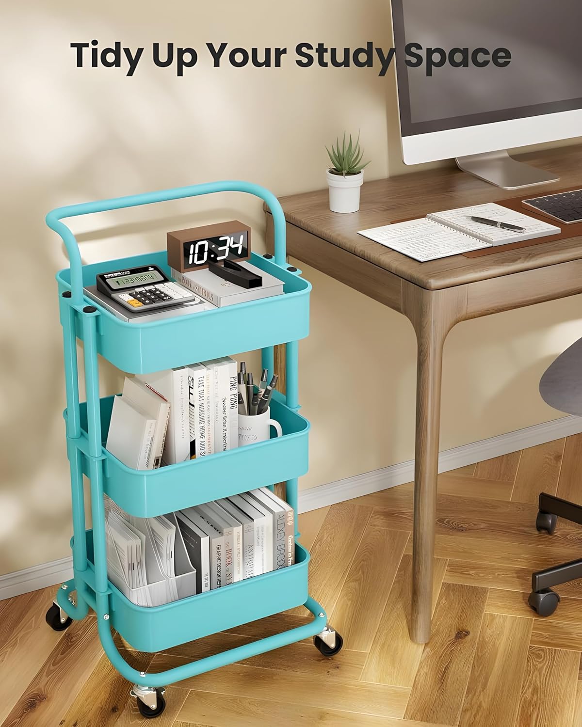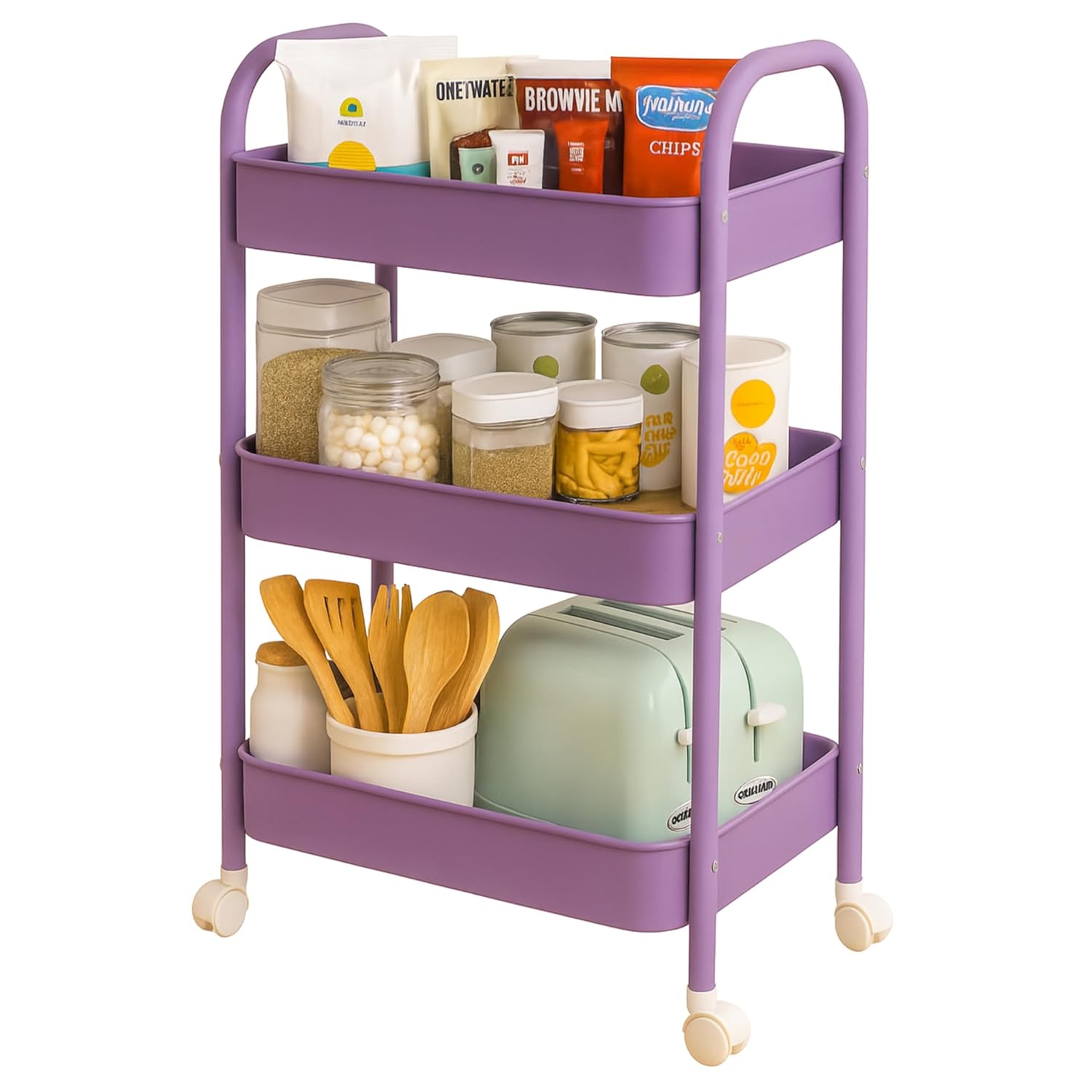 3 Tier Kitchen Trolley Rack, Kitchen Cart/Rolling Metal Organization with Handle &...
