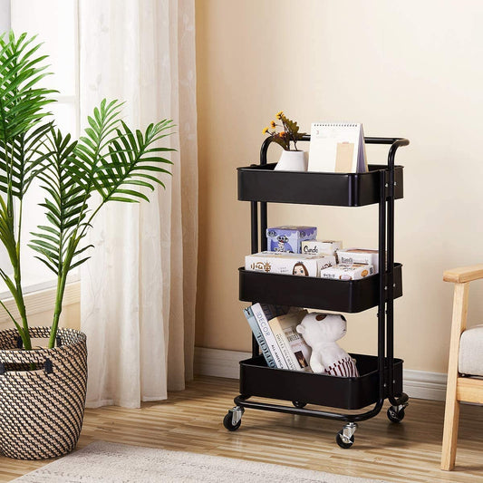 JIALTO 3 Tier Multipurpose Trolley Rack - Black