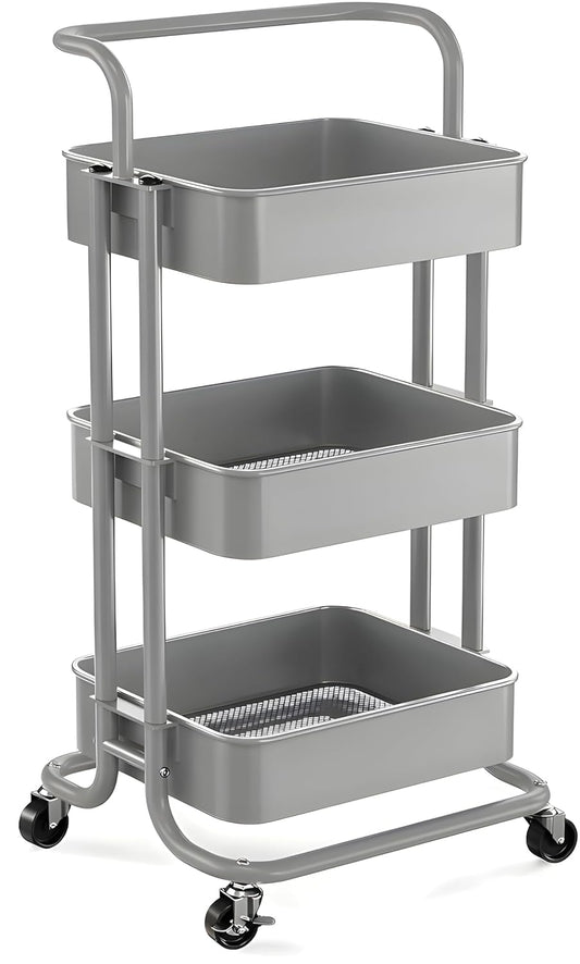 JIALTO 3 Tier Multipurpose Trolley Rack - Grey)