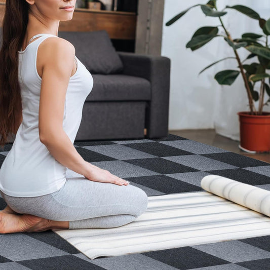 JIALTO Carpet Tiles 24x24 Clearance, Set of 12 Peel & Stick Smoke Grey