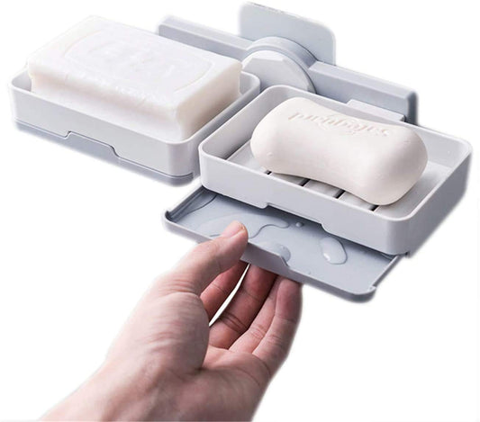 • JIALTO Plastic Wall Mounted Double Layers Soap Dish Saver with Drain Tray